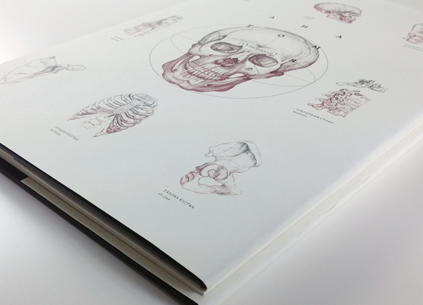 This is beautiful. I wish my Anatomy books looked like this when I was in Med. School. A concept for a futuristic/re-imagined/beautiful anatomy/osteology book by Irene Shkarovska.