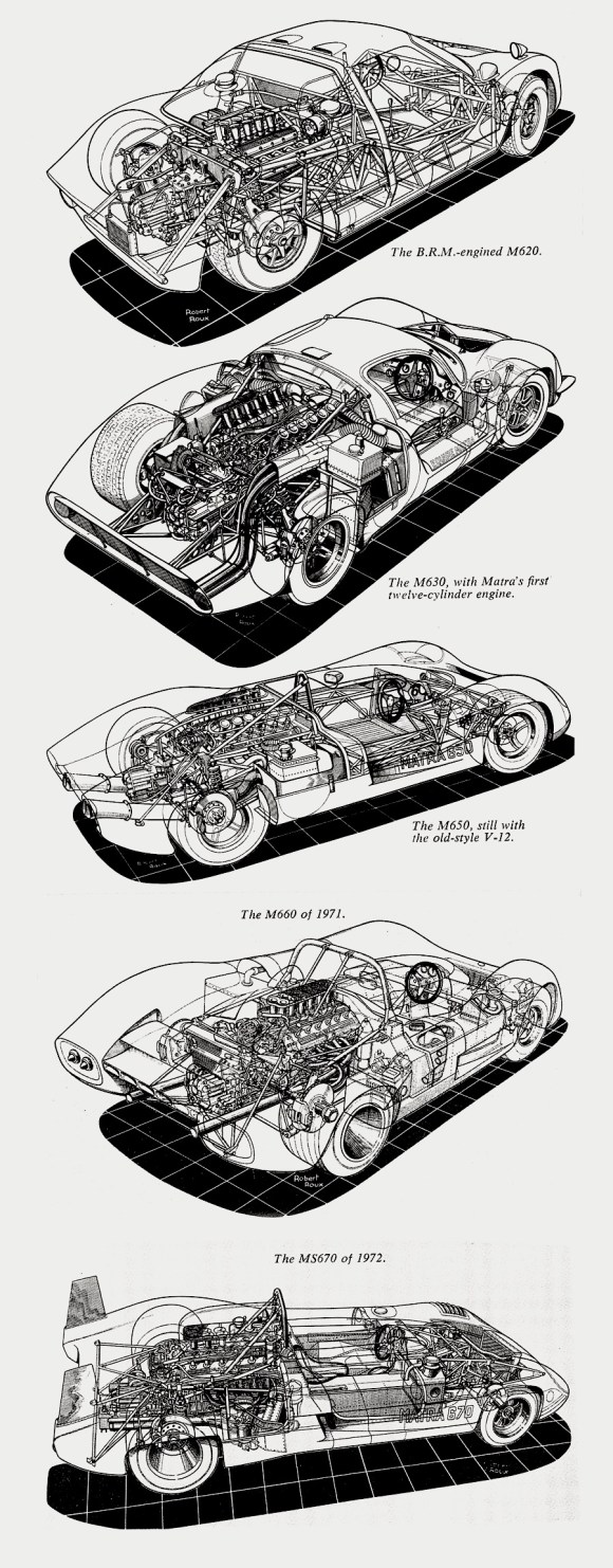 Automobiliac posted these great Matra cutaway drawings done by Robert Roux a couple of years ago! Go there to see a blistering video of a MS650 screaming across the track!